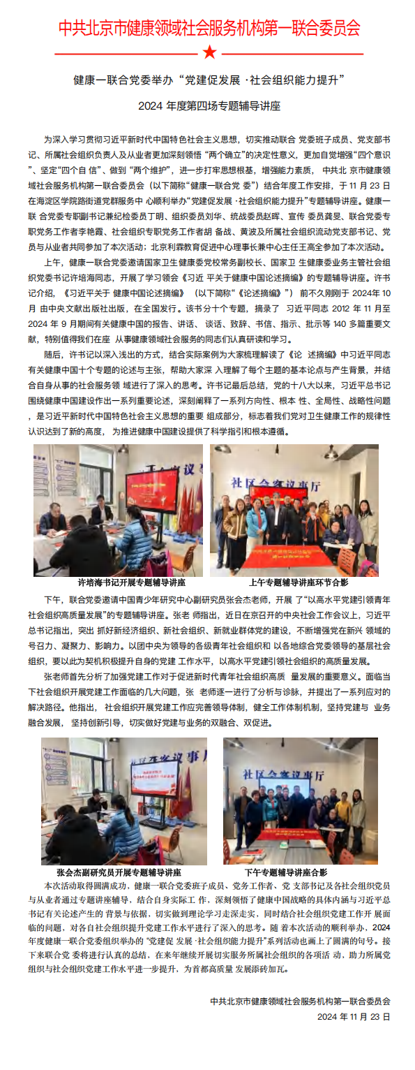 健康一联合党委举办 “党建促发展 ·社会组织能力提升”专题辅导