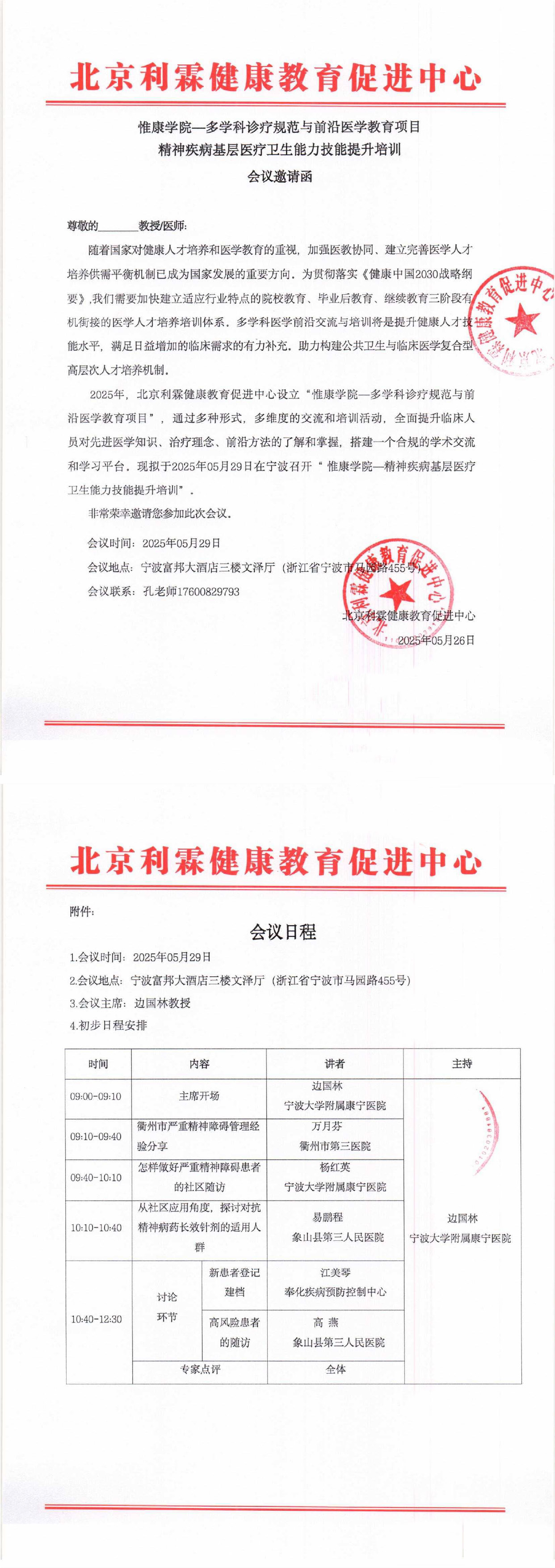 多学科教育项目-精神疾病基层医疗卫生能力技能提升培训(5.29宁波更新)