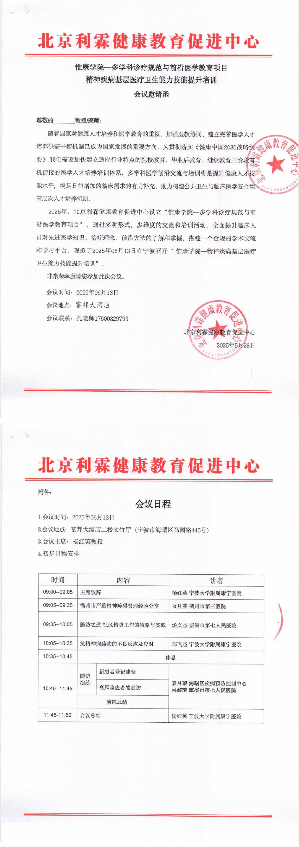 多学科教育项目-精神疾病基层医疗卫生能力技能提升培训(6.13宁波)