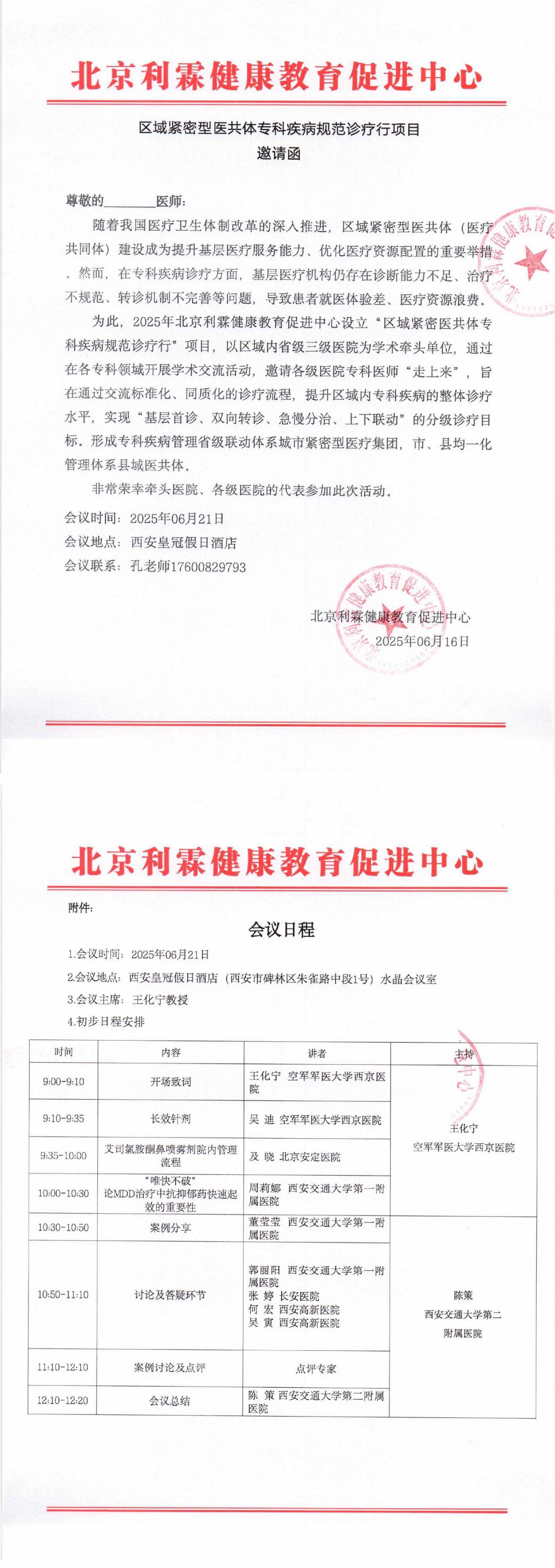 区域紧密型医共体专科疾病规范诊疗行项目-邀请函(6.21西安)