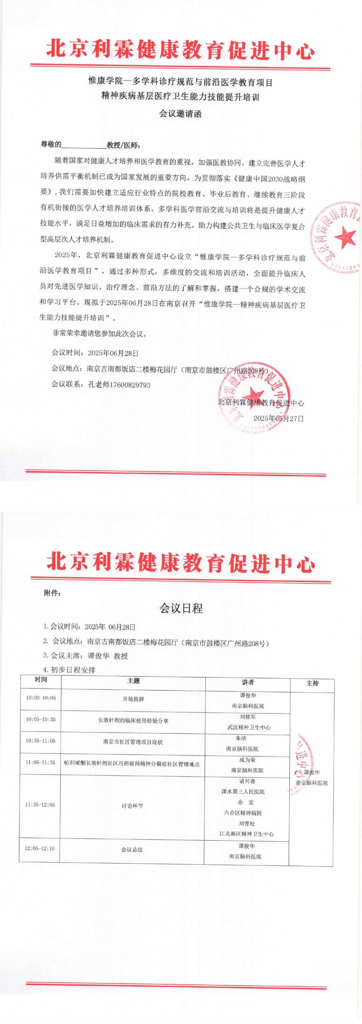 多学科教育项目-精神疾病基层医疗卫生能力技能提升培训(6.28南京)