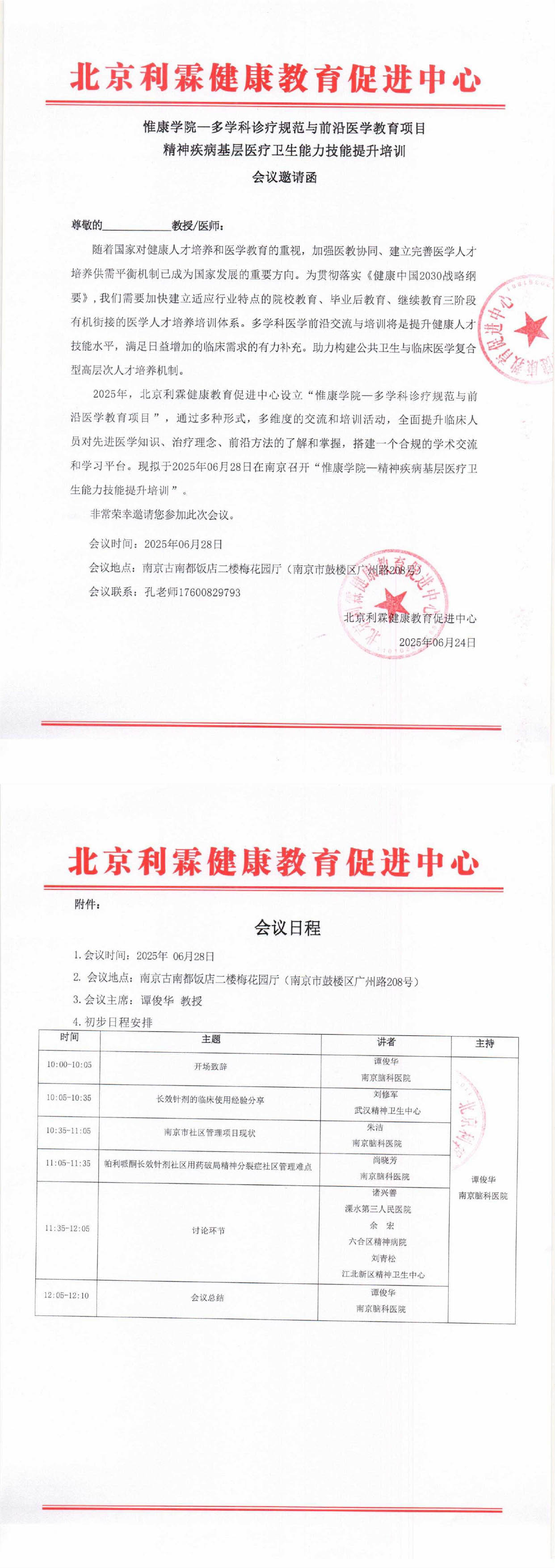 多学科教育项目-精神疾病基层医疗卫生能力技能提升培训(6.28南京更新)