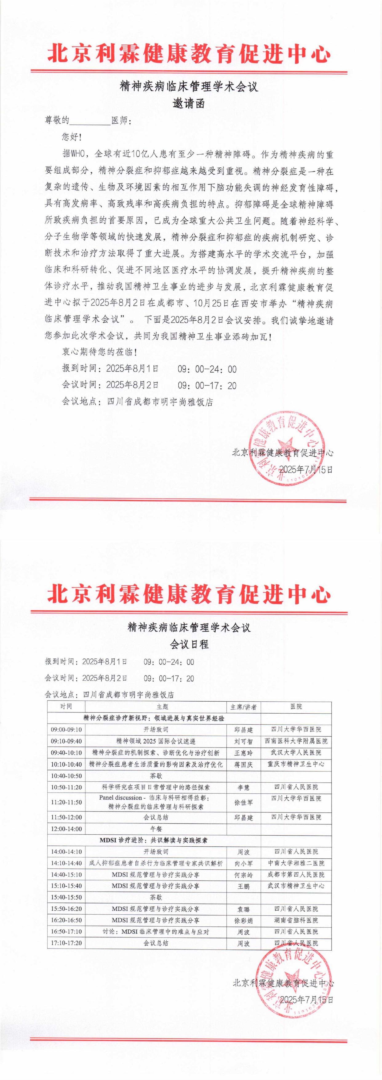 精神疾病临床管理学术会议邀请函