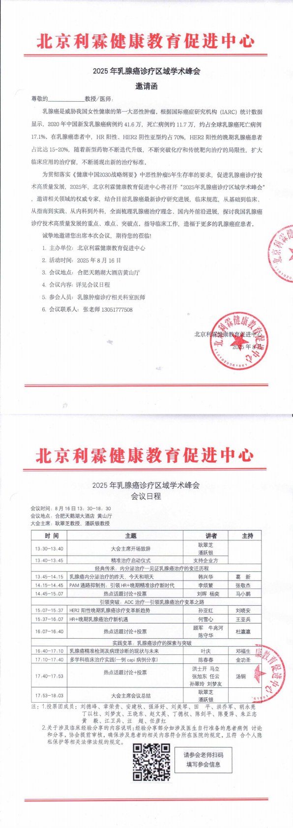 2025年乳腺癌诊疗区域学术峰会-邀请函(8月16日合肥)
