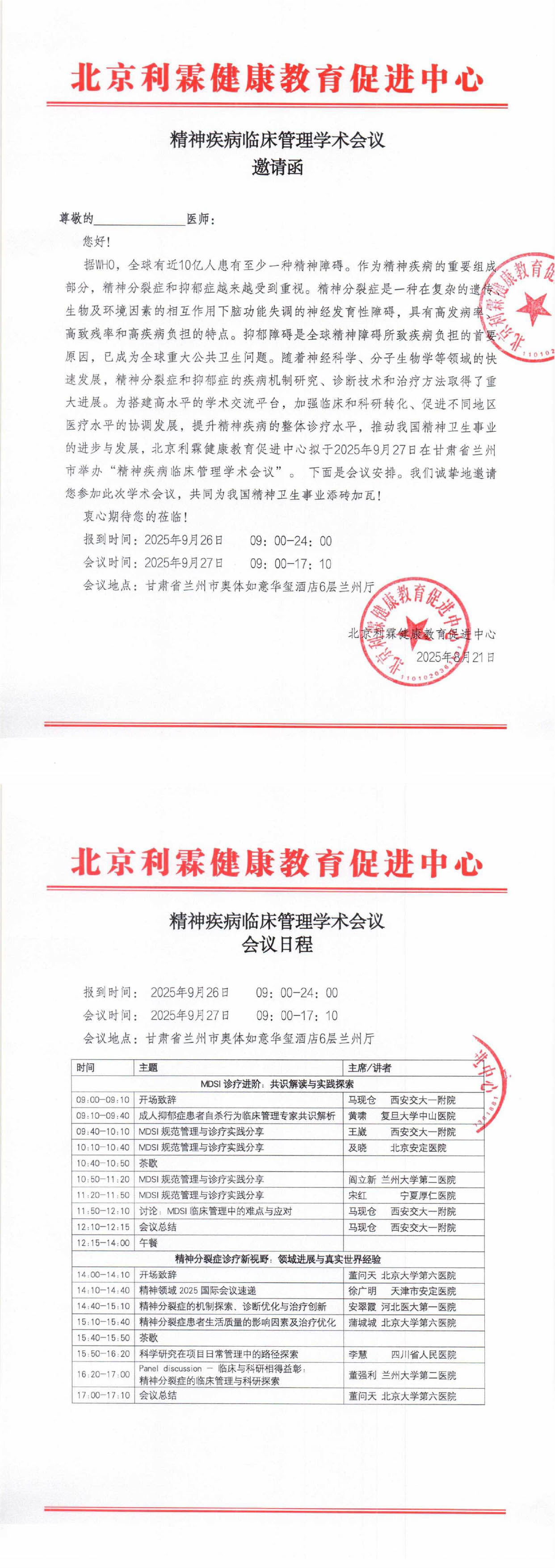 精神疾病临床管理学术会议-邀请函(9.27甘肃)