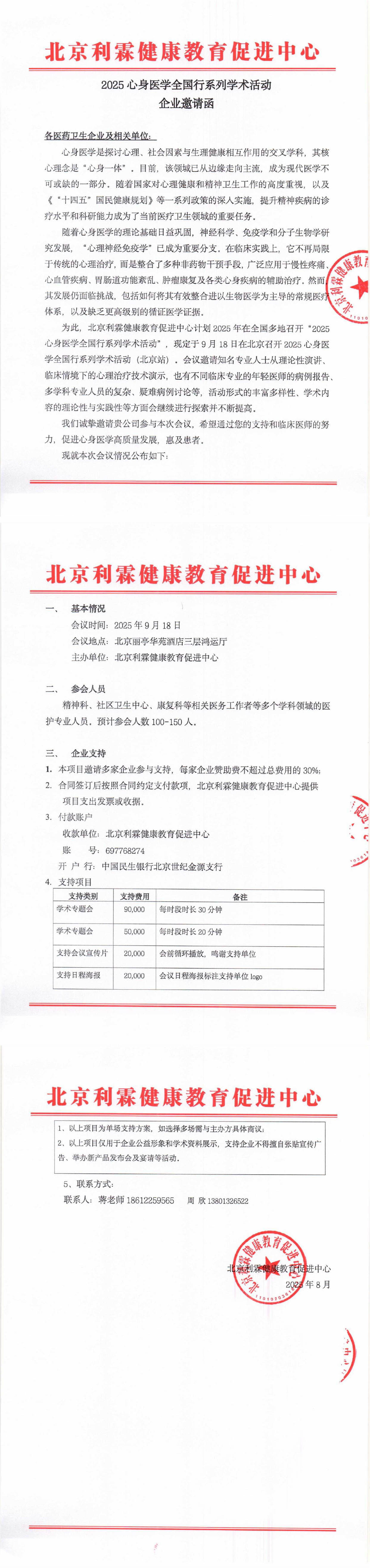 2025心身医学全国行系列学术活动企业-企业邀请函