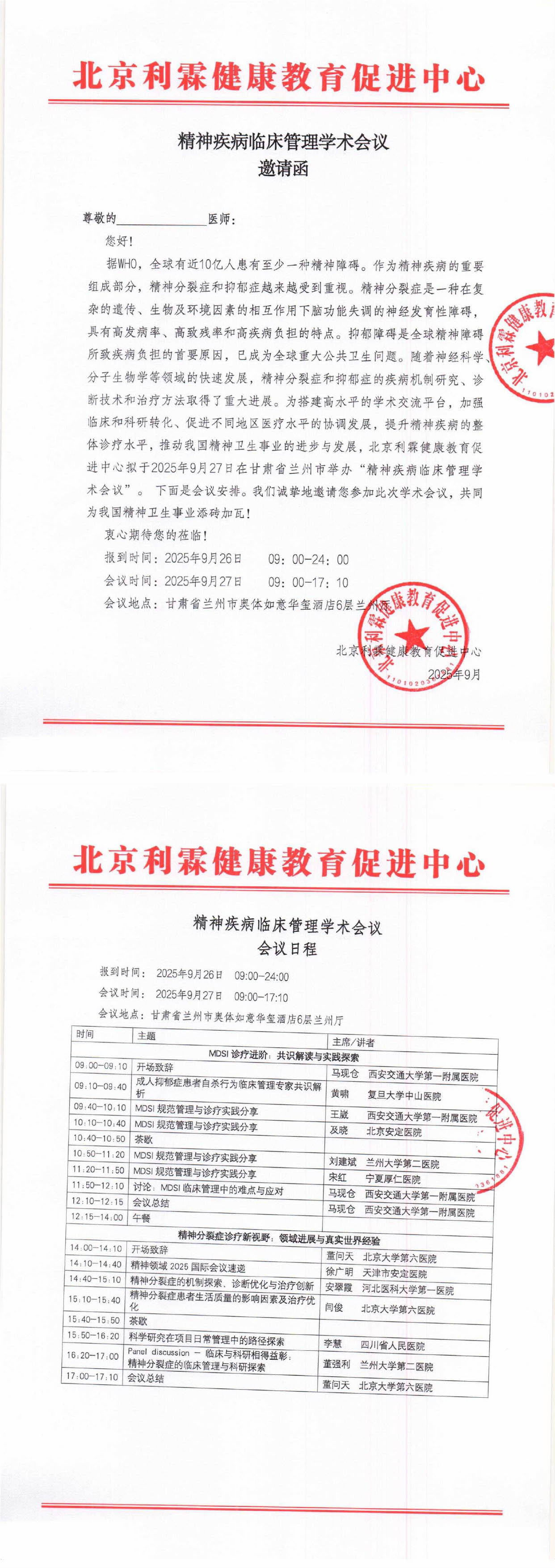 精神疾病临床管理学术会议-邀请函(9.27甘肃更新)