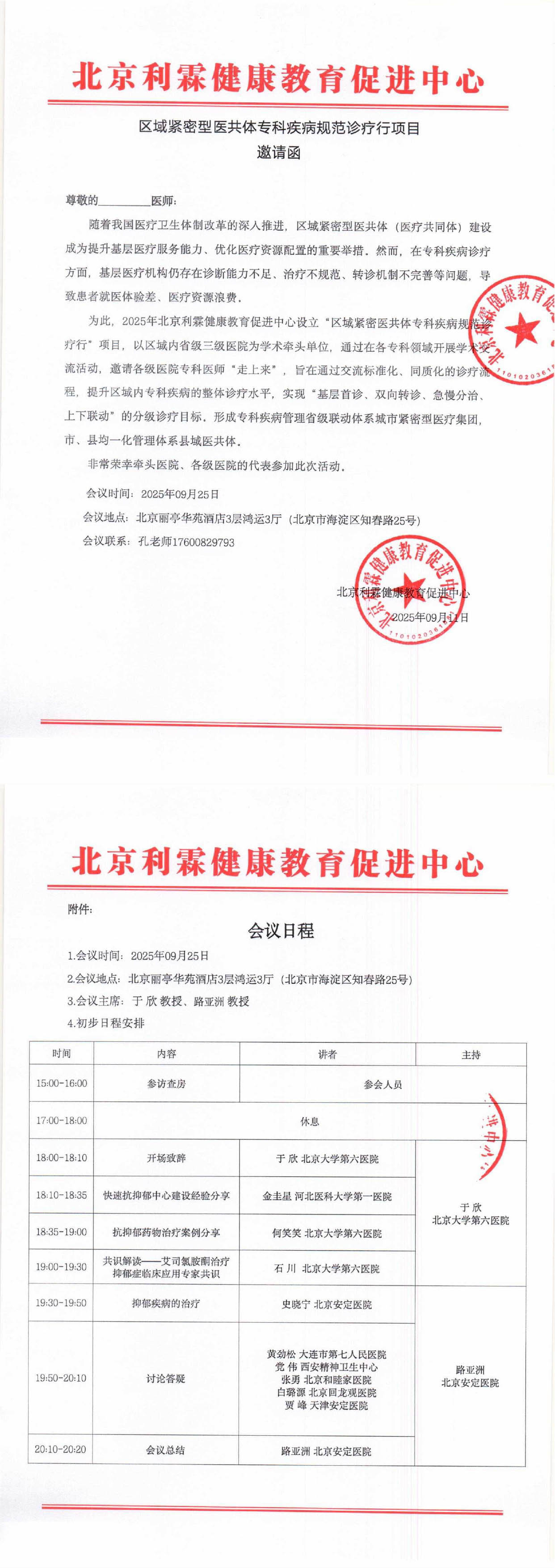 区域紧密型医共体专科疾病规范诊疗行项目-邀请函(9.25北京)
