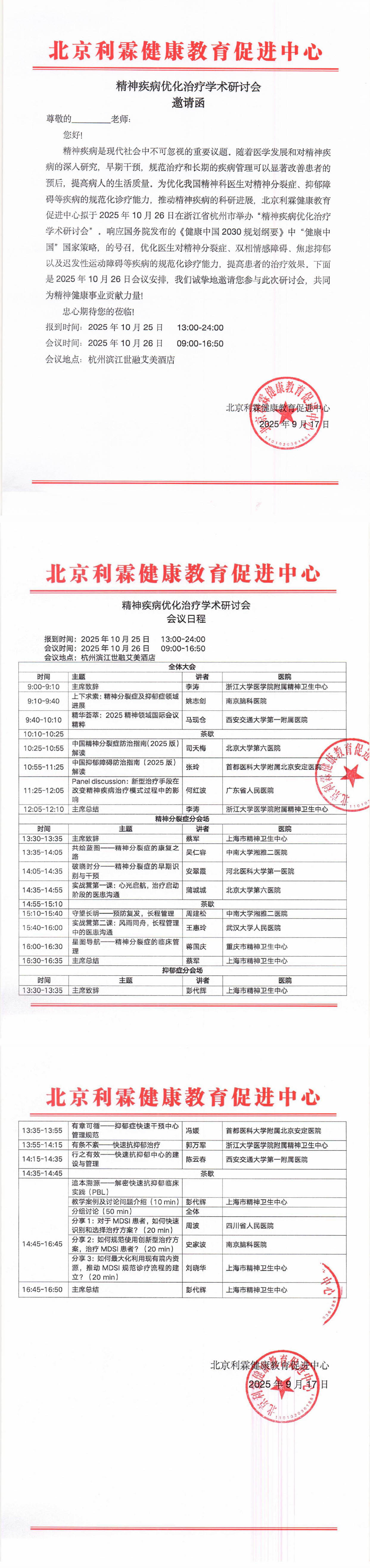 精神疾病优化治疗学术研讨会-邀请函(10.26杭州)