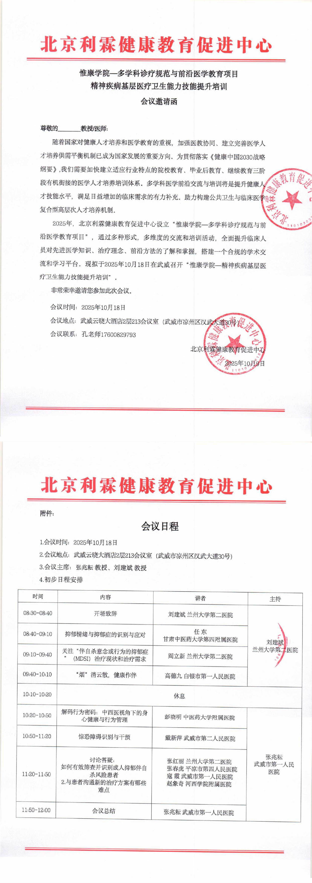 多学科教育项目-精神疾病基层医疗卫生能力技能提升培训(10.18武威)