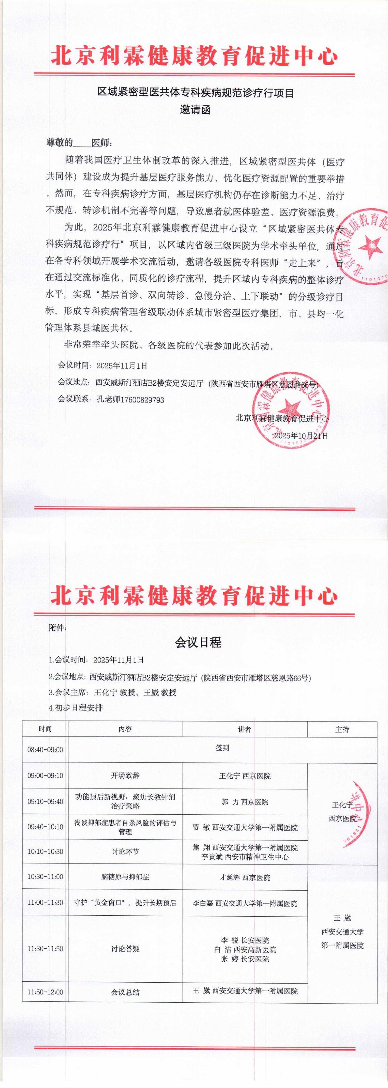 区域紧密型医共体专科疾病规范诊疗行项目-邀请函(11.1西安)
