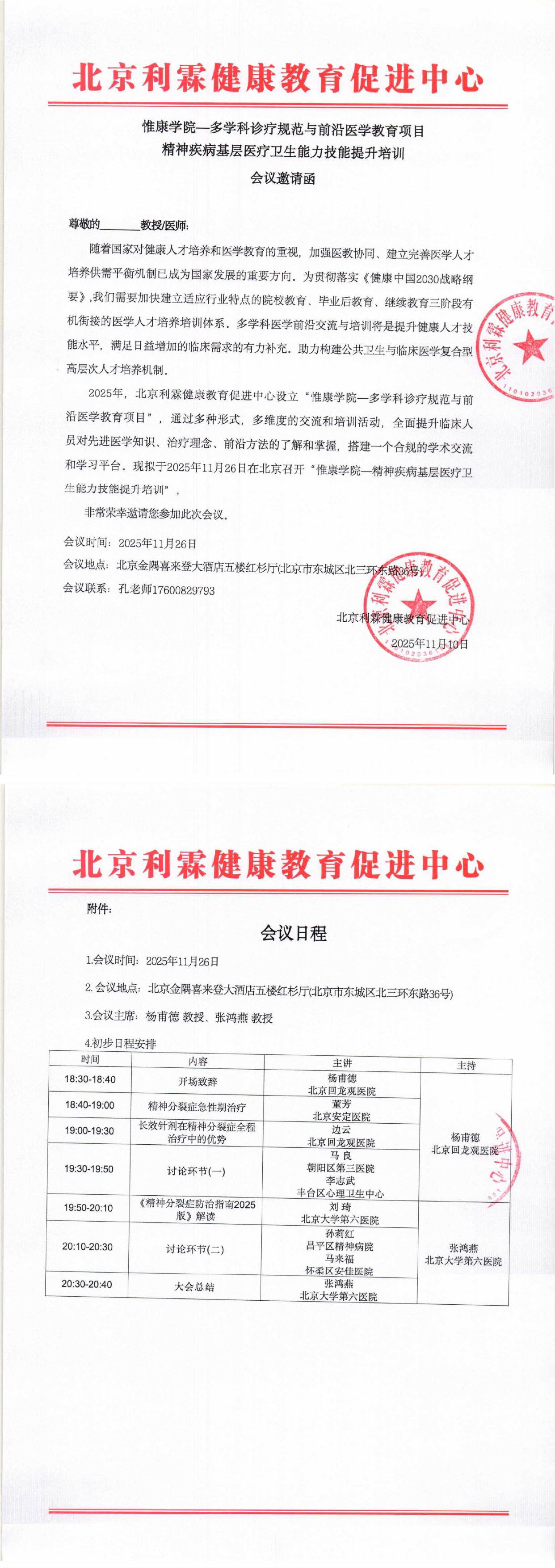 多学科教育项目-精神疾病基层医疗卫生能力技能提升培训(11.26北京)