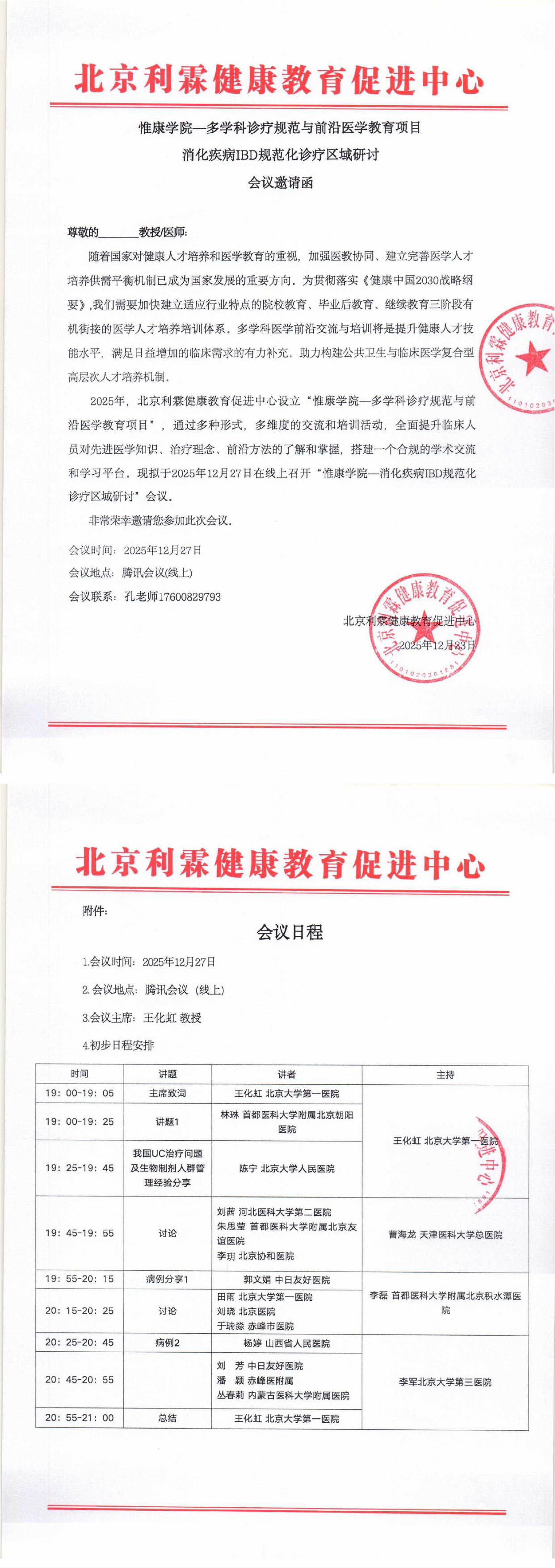 多学科教育项目-消化疾病IBD规范化诊疗区域研讨会会议邀请函(12.27线上)
