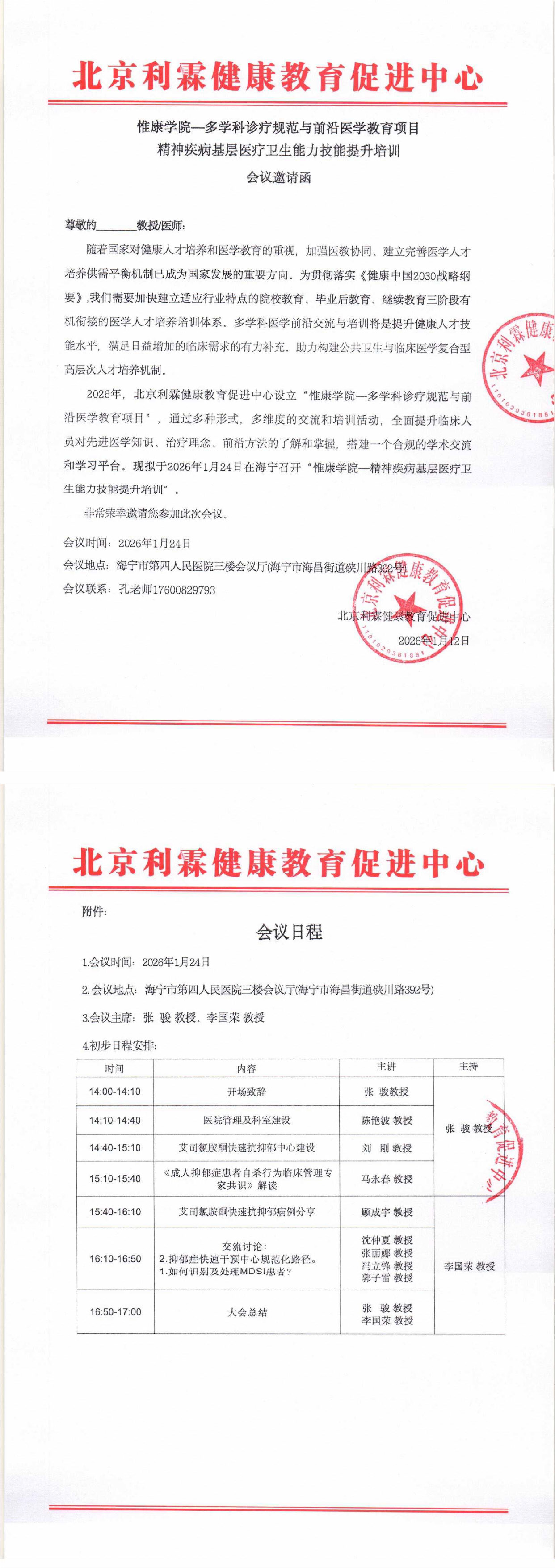 多学科教育项目-精神疾病基层医疗卫生能力技能提升培训(1.24海宁)
