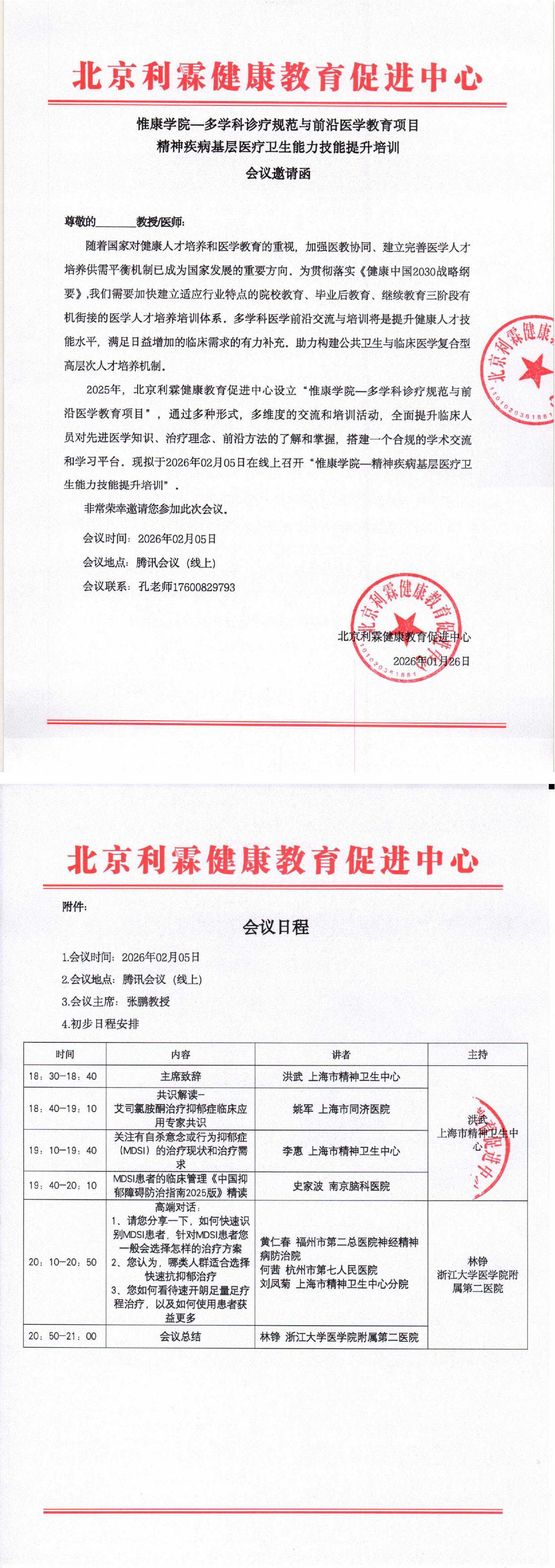 多学科教育项目-精神疾病基层医疗卫生能力技能提升培训(2.5腾讯会议)